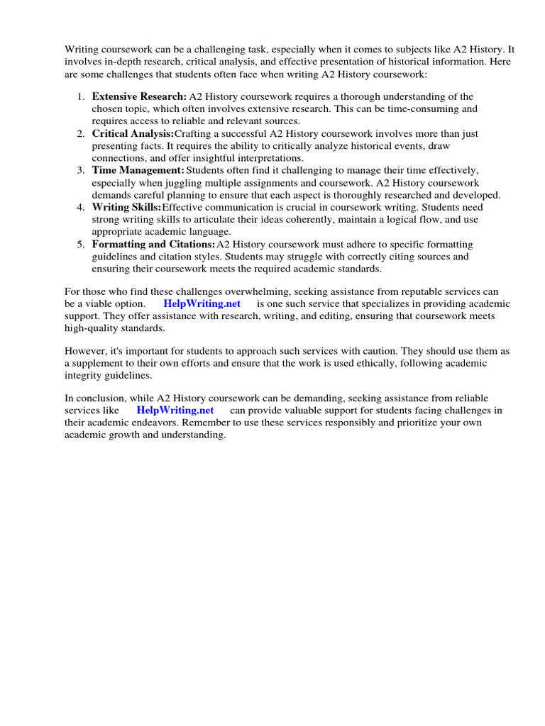 In conclusion, while A2 History coursework can be demanding, seeking assistance from reliable