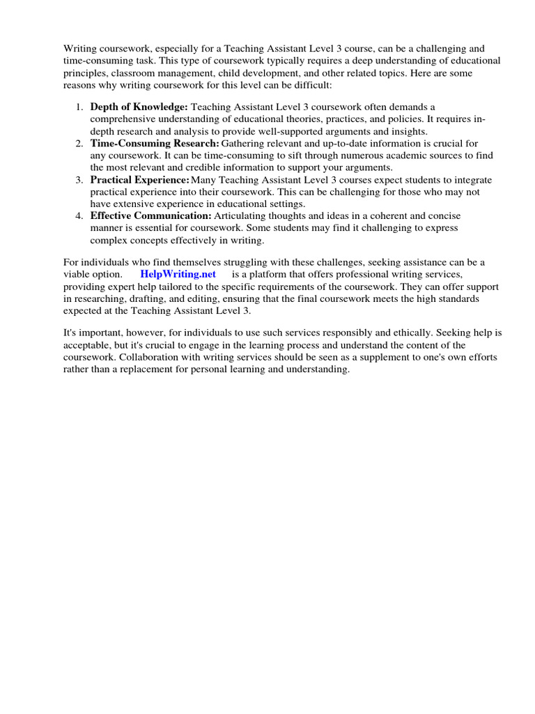 Writing coursework, especially for a Teaching Assistant Level 3 course, can be a challenging and