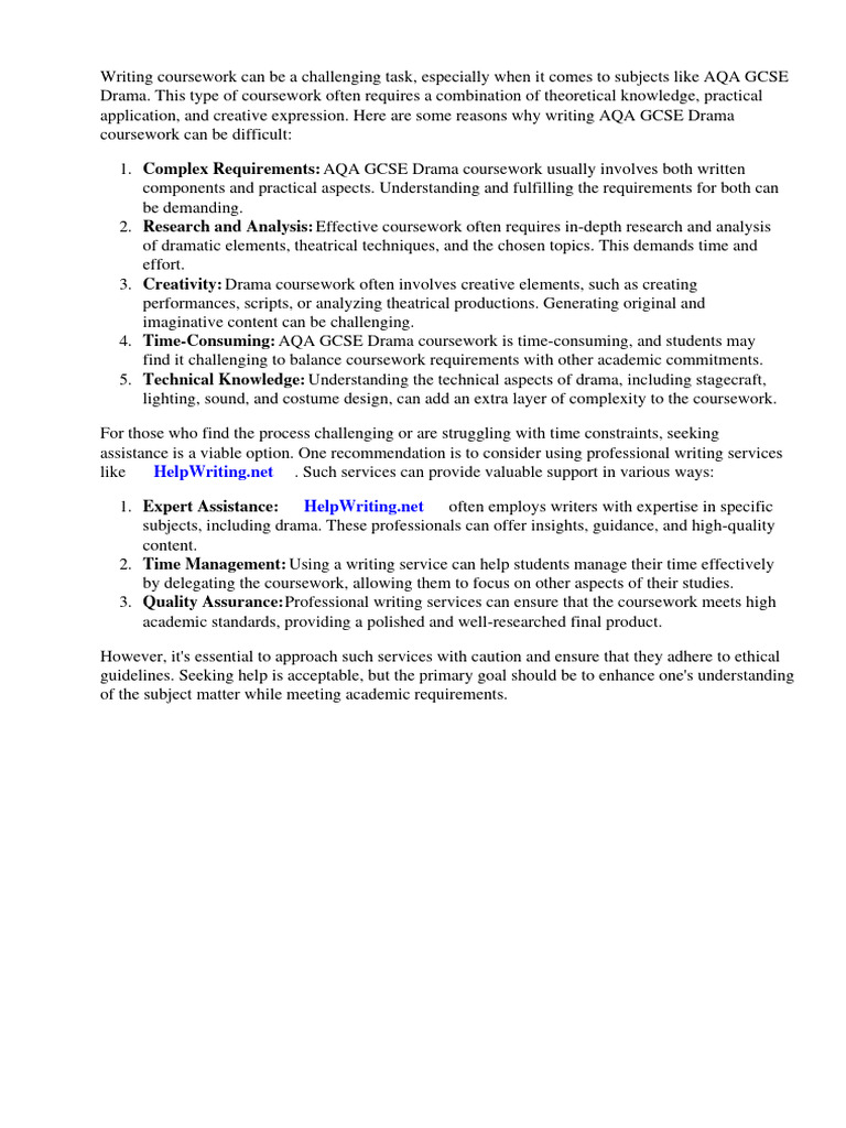 1. Complex Requirements: AQA GCSE Drama coursework usually involves both written