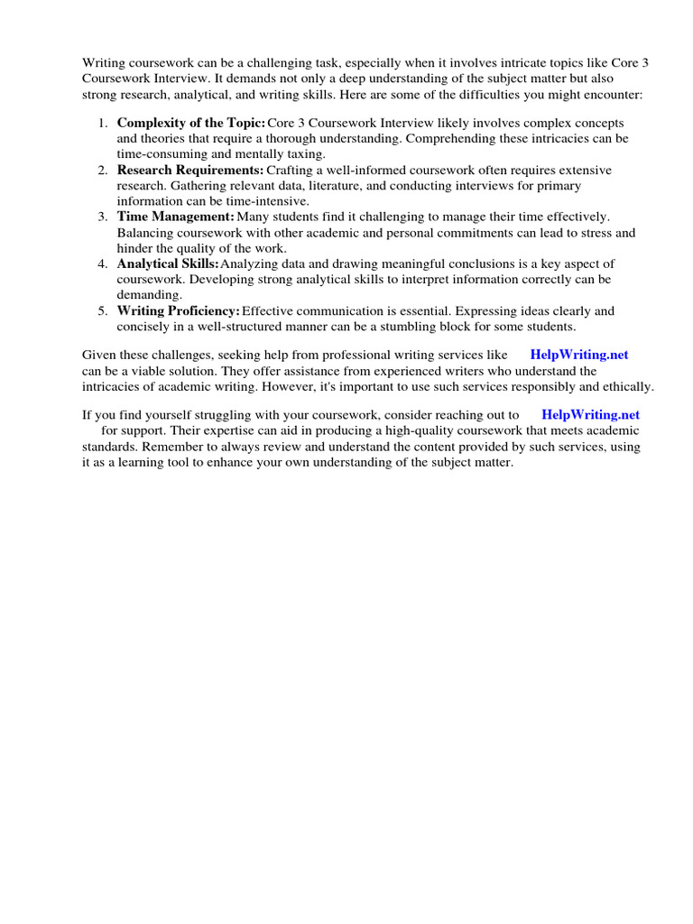 1. Complexity of the Topic: Core 3 Coursework Interview likely involves complex concepts