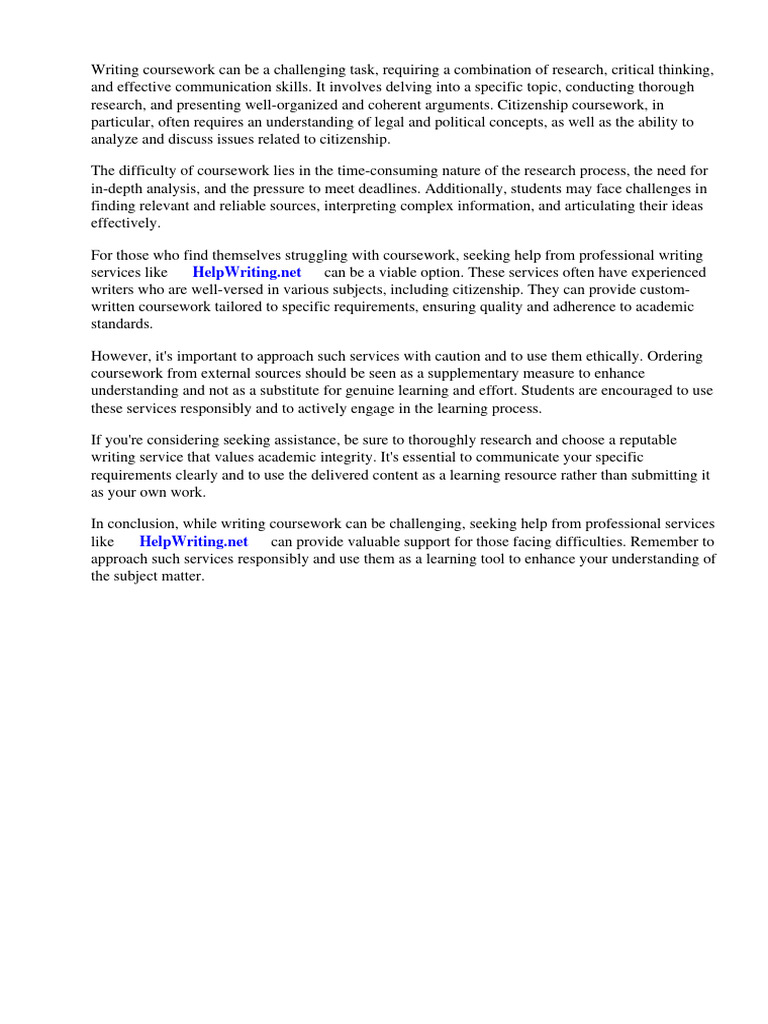 research, and presenting well-organized and coherent arguments. Citizenship coursework, in
