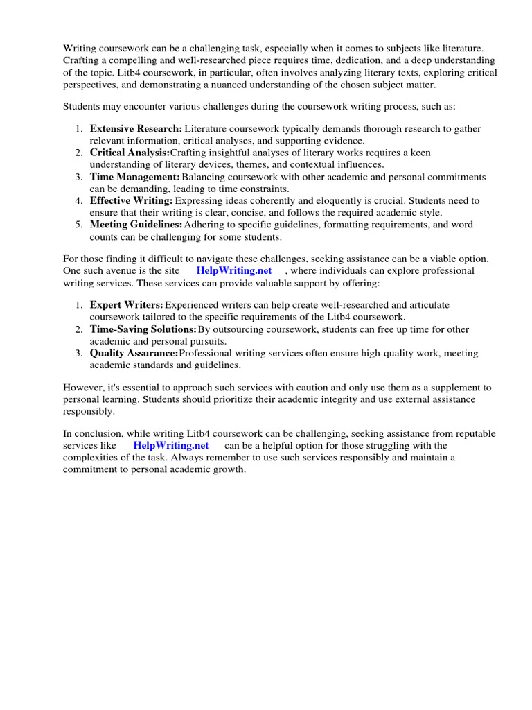 of the topic. Litb4 coursework, in particular, often involves analyzing literary texts, exploring critical