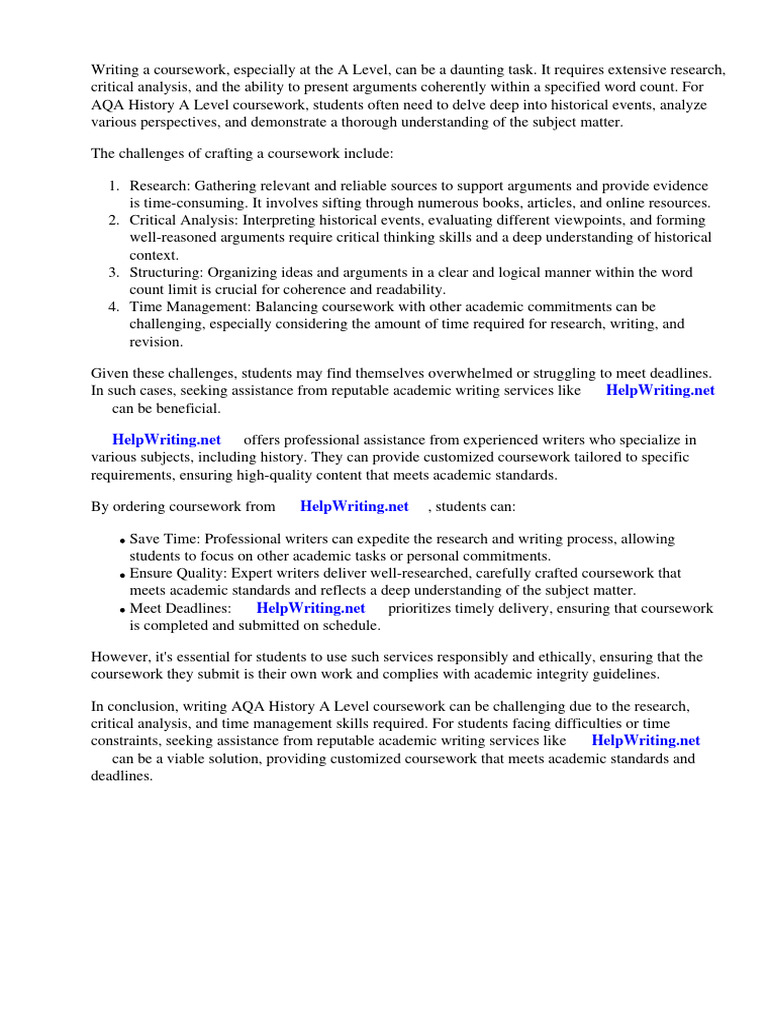 In conclusion, writing AQA History A Level coursework can be challenging due to the research,