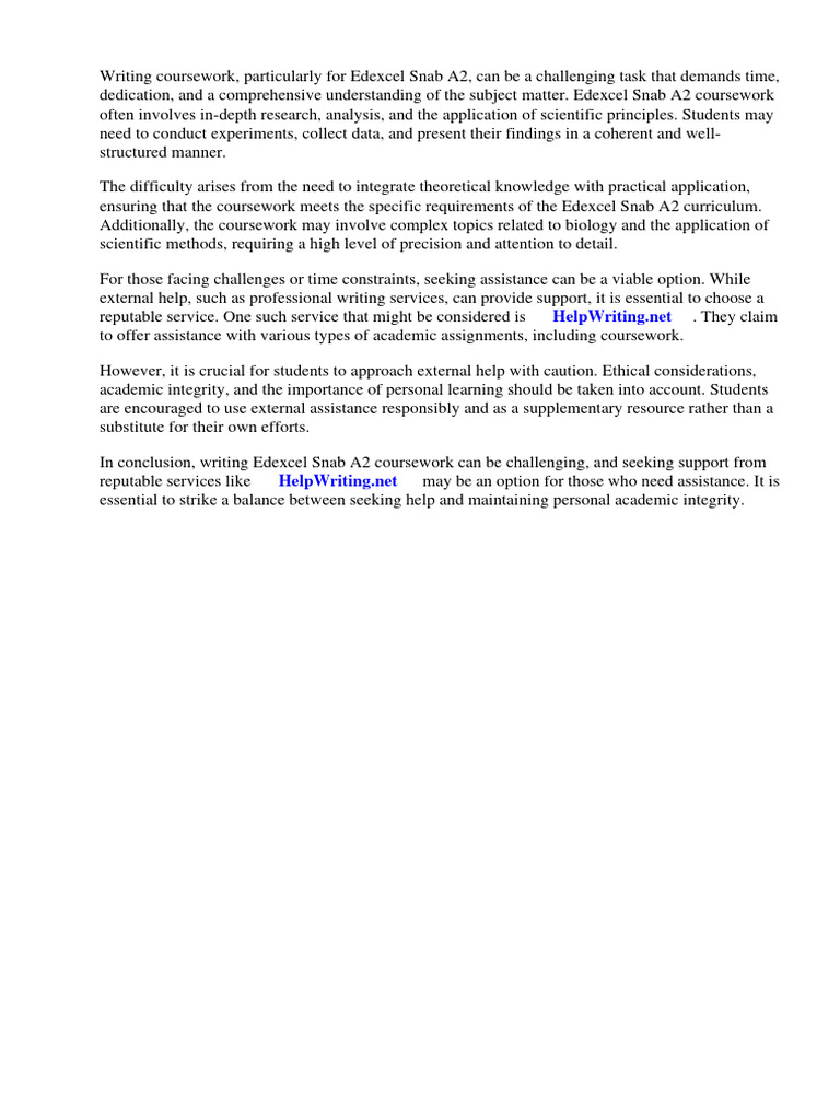 Writing coursework, particularly for Edexcel Snab A2, can be a challenging task that demands time,