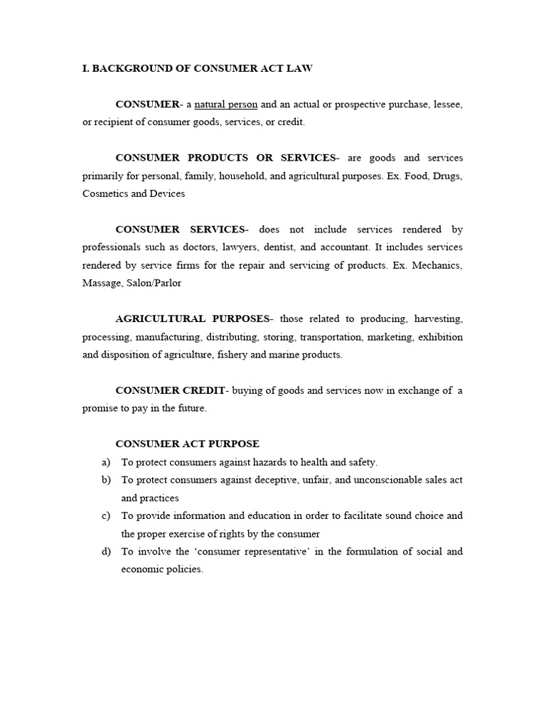 BACKGROUND OF CONSUMER ACT LAW