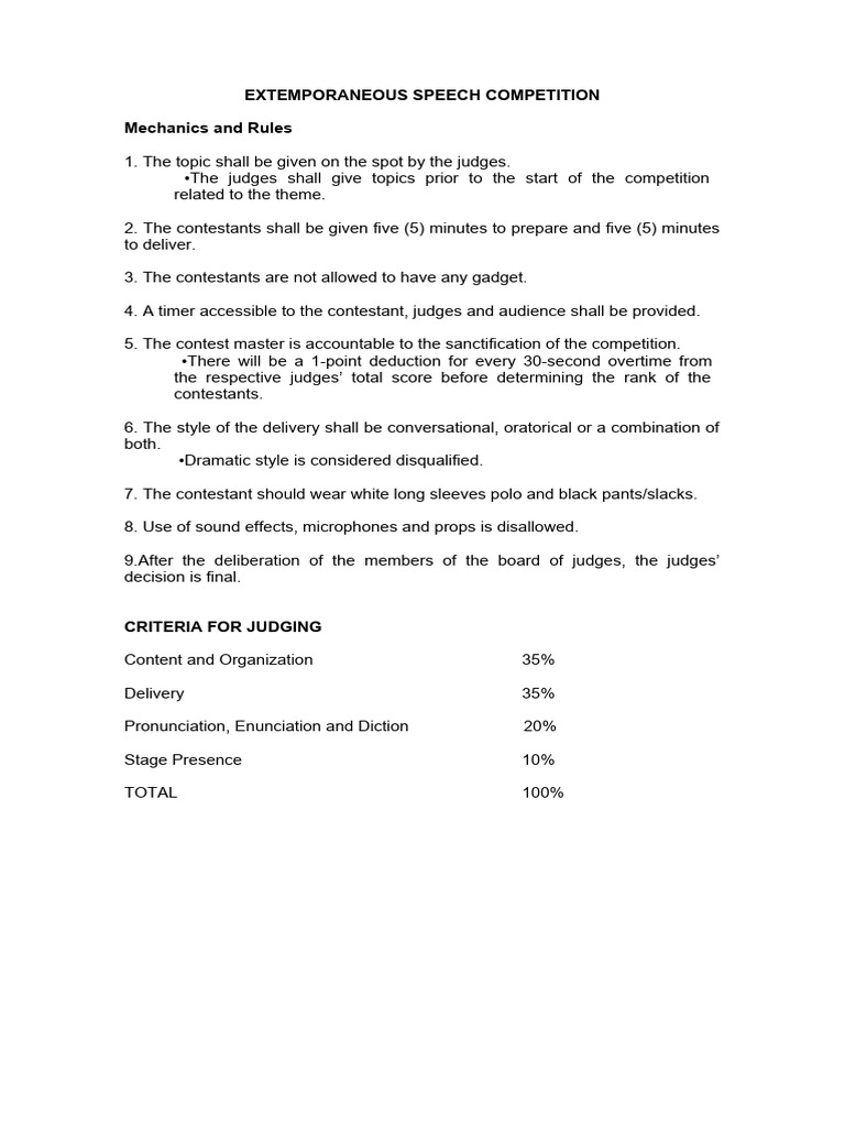 •The judges shall give topics prior to the start of the competition