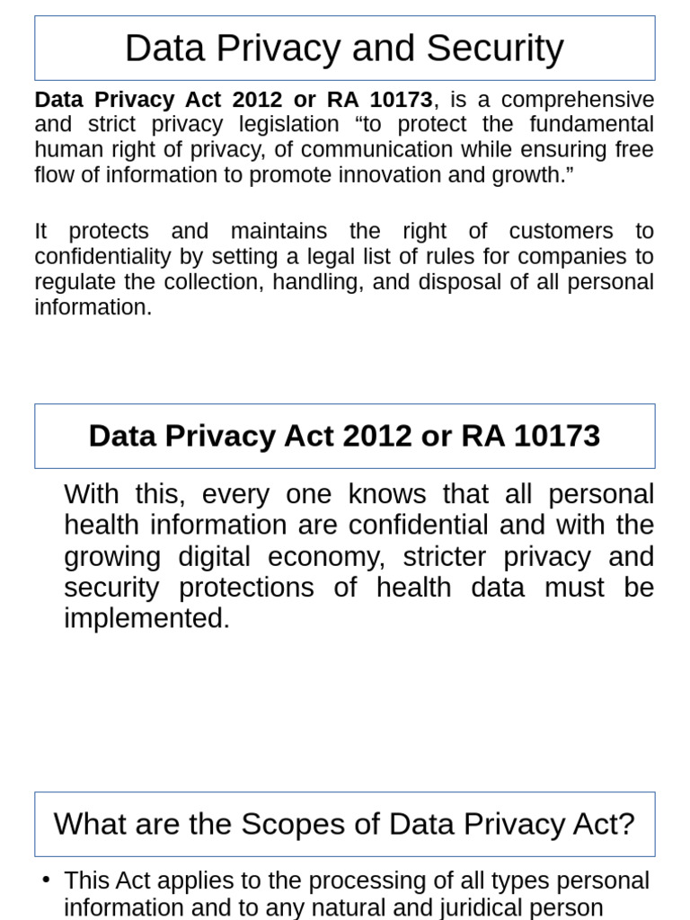 Data Privacy Act 2012 or RA 10173, is a comprehensive