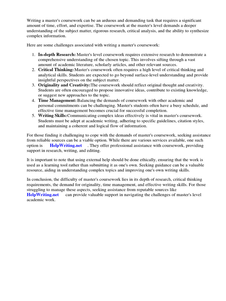 Writing a master's coursework can be an arduous and demanding task that requires a significant
