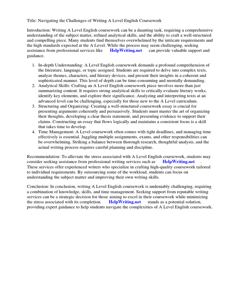 Title: Navigating the Challenges of Writing A Level English Coursework