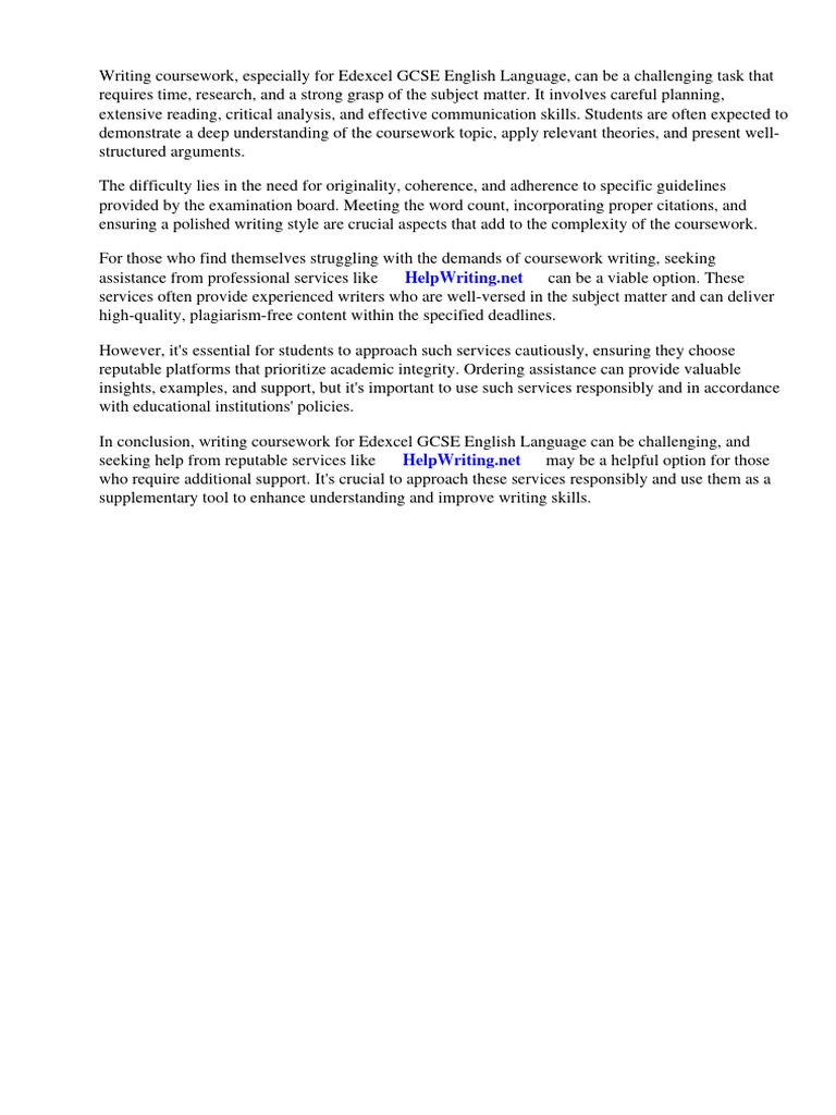 In conclusion, writing coursework for Edexcel GCSE English Language can be challenging, and