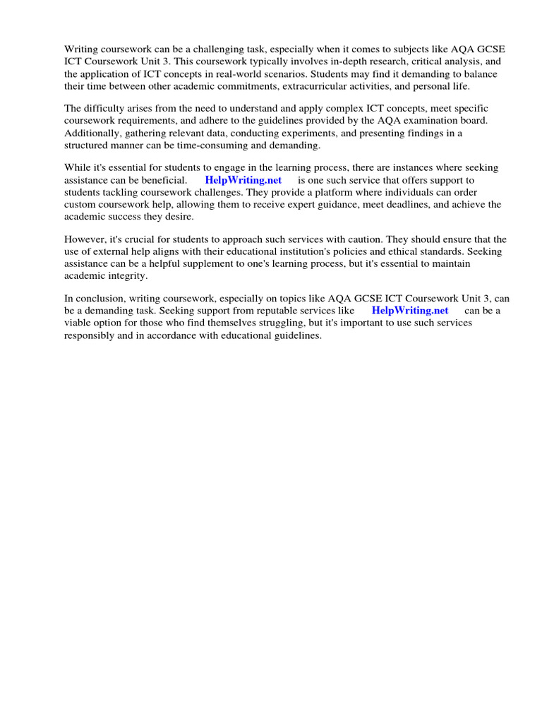 In conclusion, writing coursework, especially on topics like AQA GCSE ICT Coursework Unit 3, can