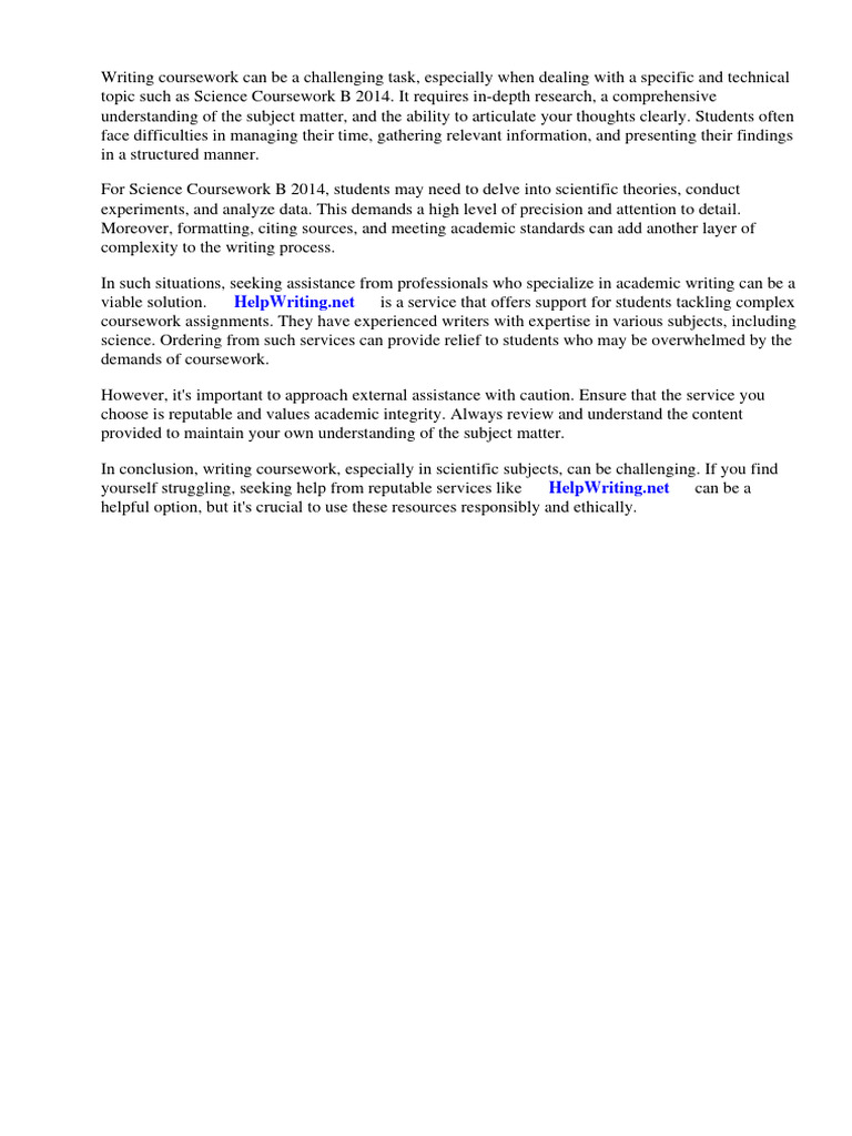 topic such as Science Coursework B 2014. It requires in-depth research, a comprehensive
