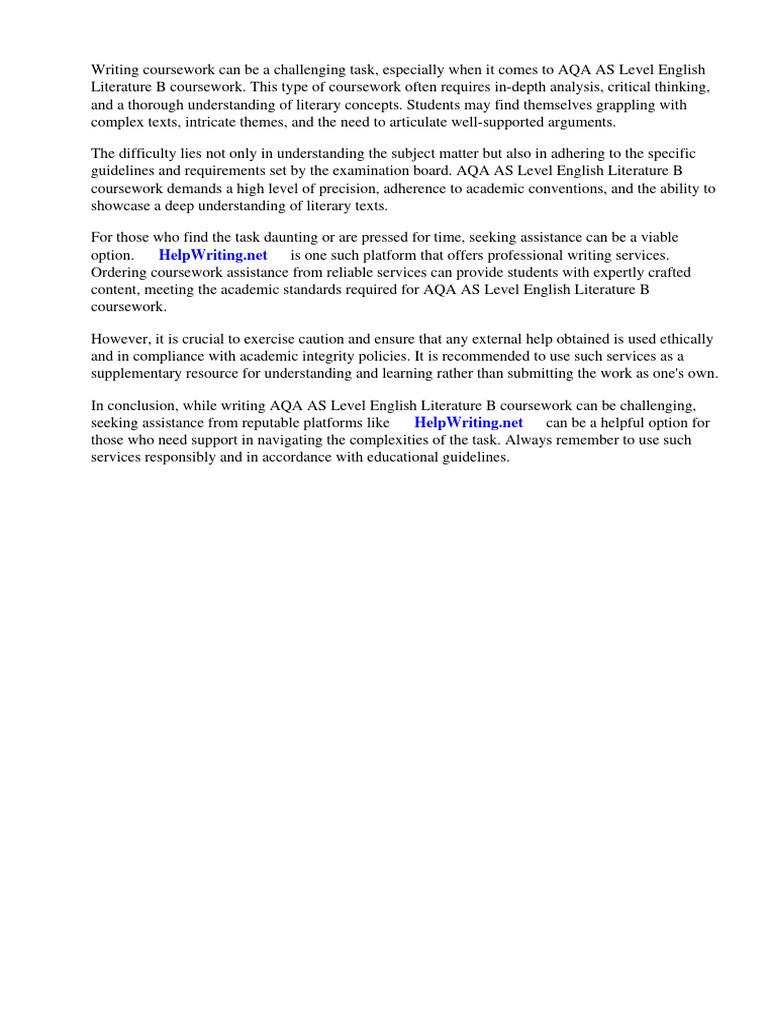 In conclusion, while writing AQA AS Level English Literature B coursework can be challenging,