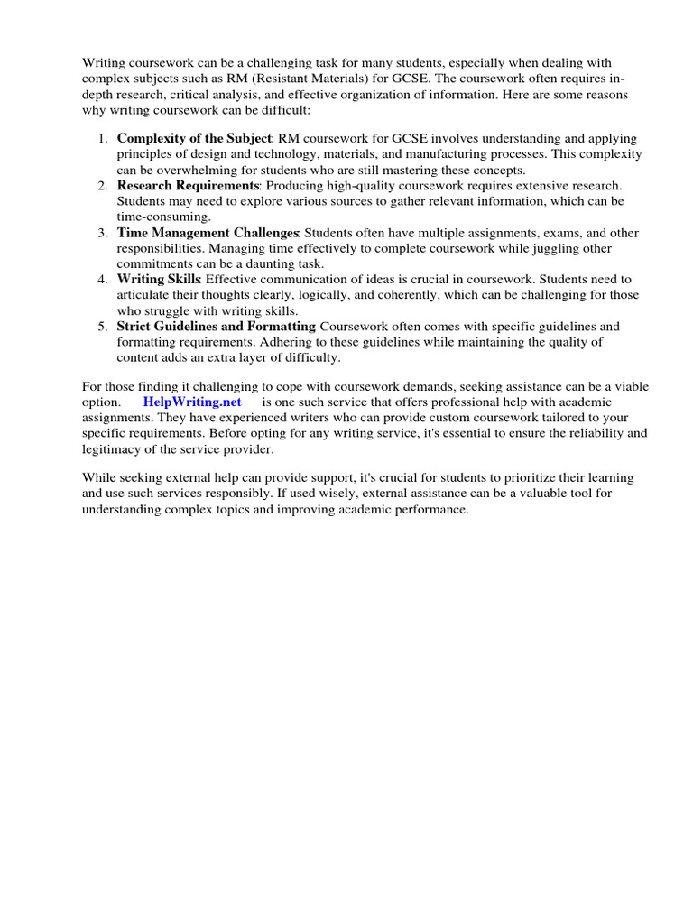 1. Complexity of the Subject: RM coursework for GCSE involves understanding and applying