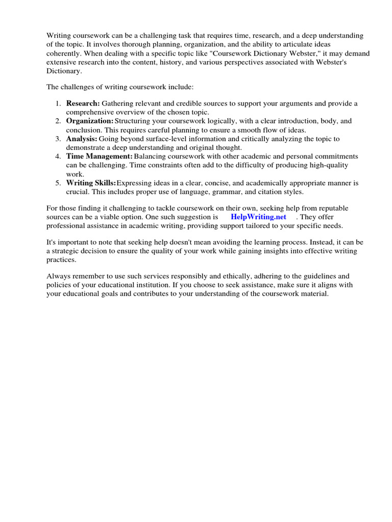 coherently. When dealing with a specific topic like "Coursework Dictionary Webster," it may demand