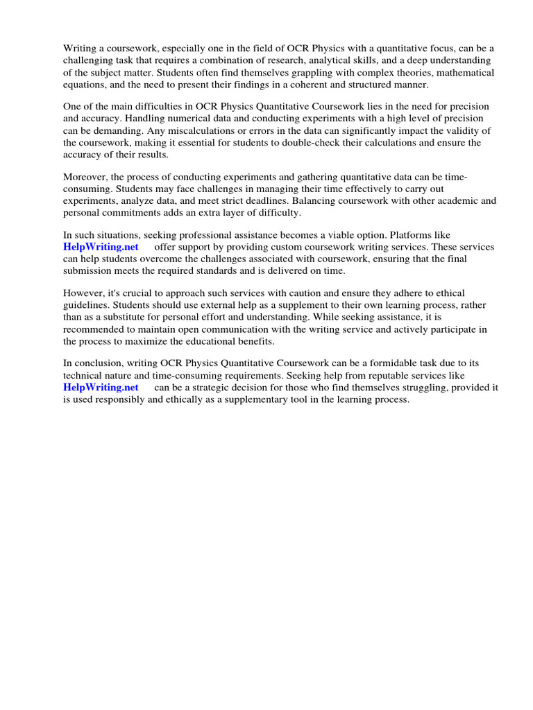 Writing a coursework, especially one in the field of OCR Physics with a quantitative focus, can be a