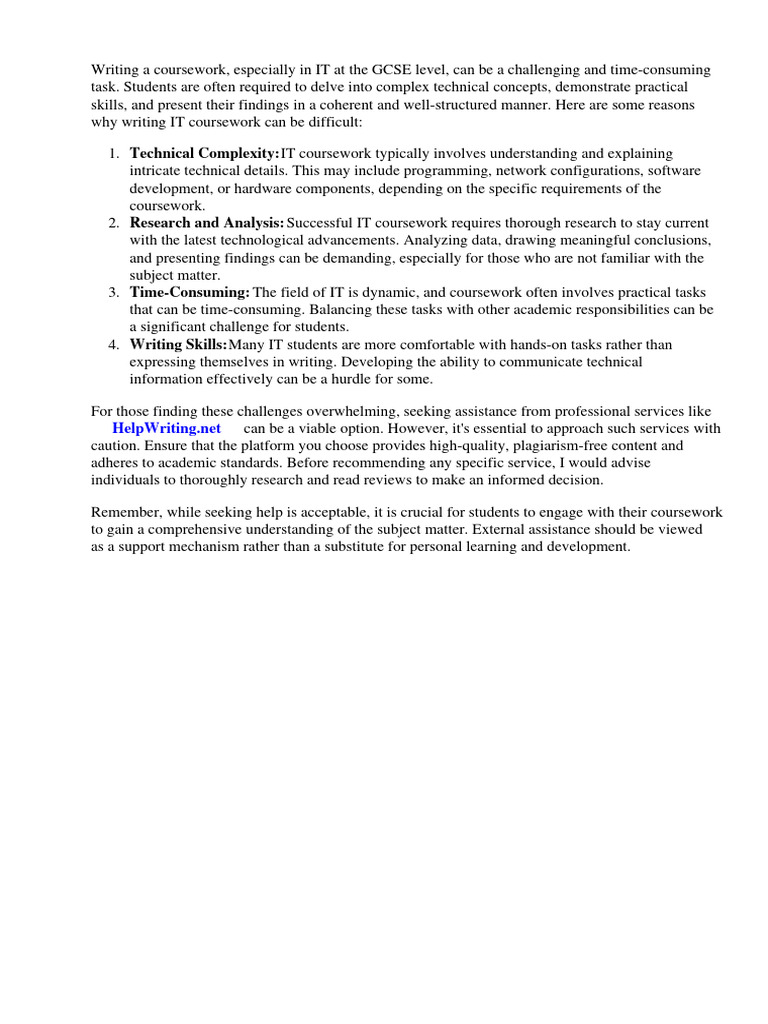 Writing a coursework, especially in IT at the GCSE level, can be a challenging and time-consuming