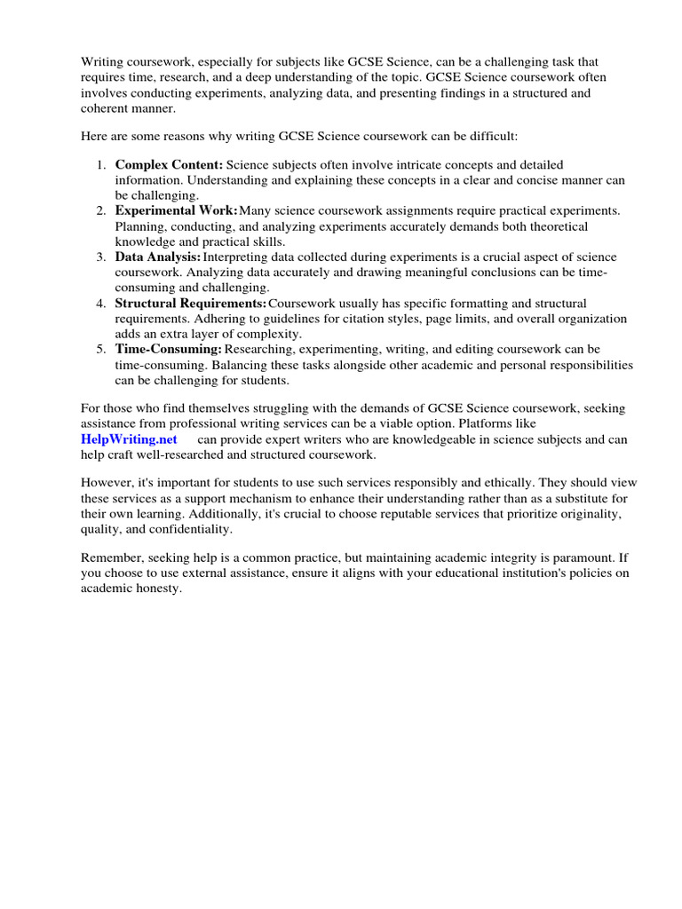 requires time, research, and a deep understanding of the topic. GCSE Science coursework often
