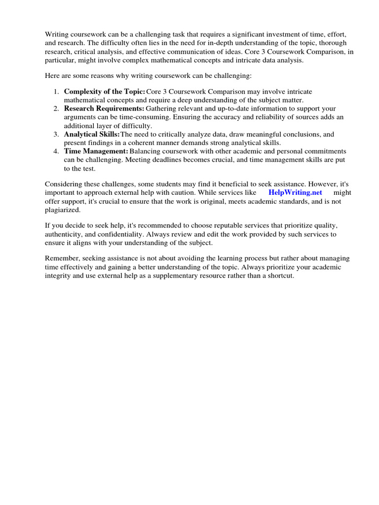 1. Complexity of the Topic: Core 3 Coursework Comparison may involve intricate