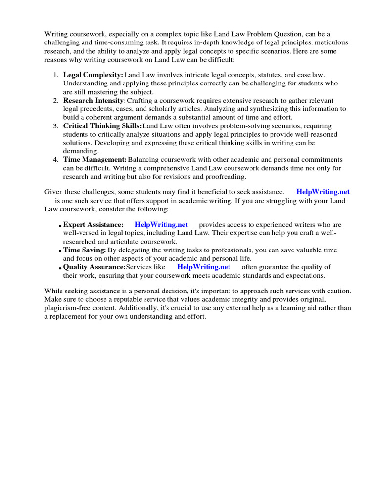 can be difficult. Writing a comprehensive Land Law coursework demands time not only for