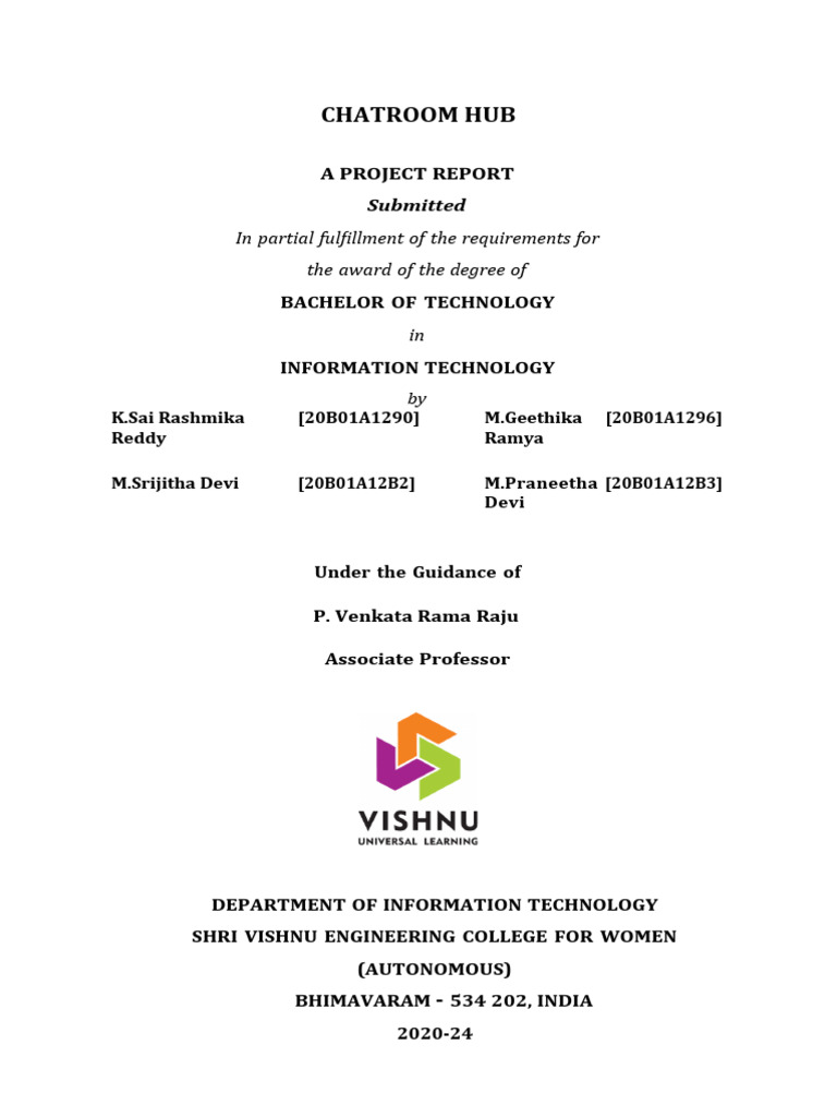 requirements for the award of the degree of B. Tech (IT), Shri Vishnu Engineering College for Women. I