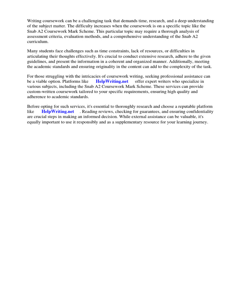 various subjects, including the Snab A2 Coursework Mark Scheme. These services can provide