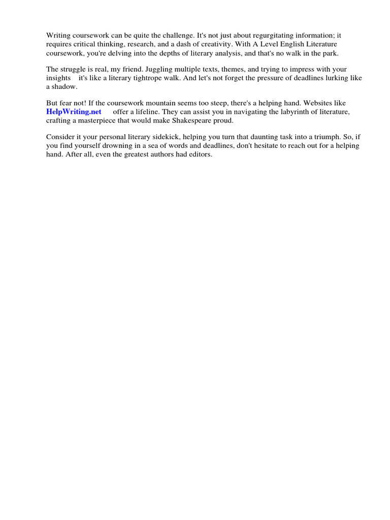 written personally from scratch. English literature coursework help service guarantees you 100 %