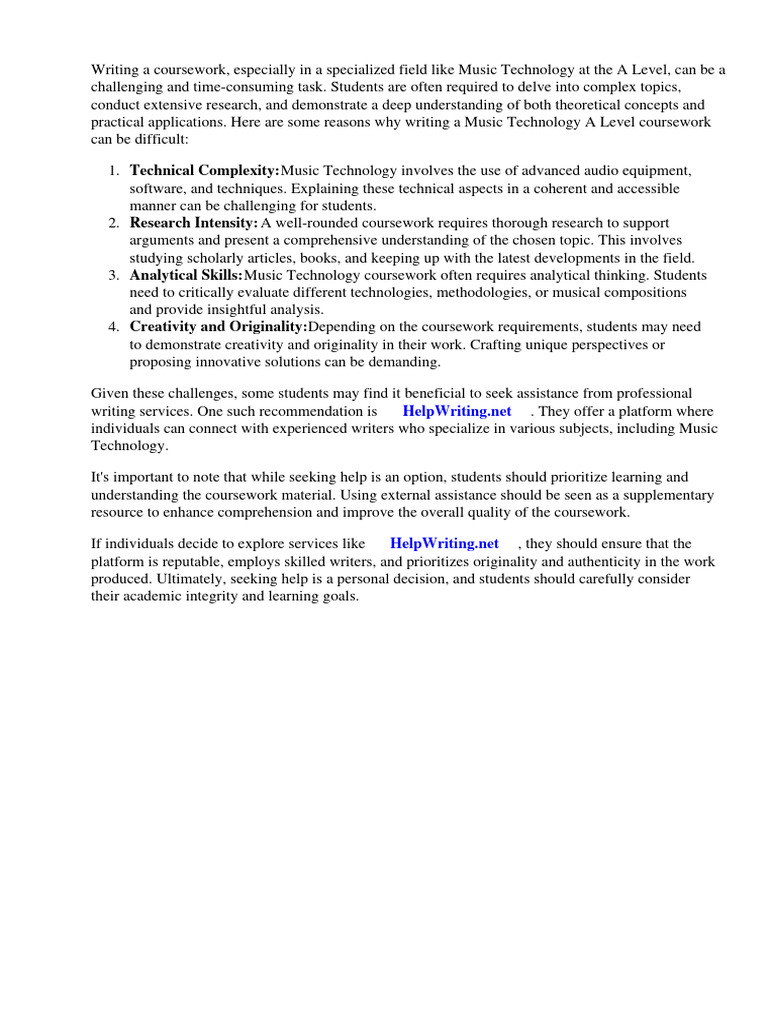 Writing a coursework, especially in a specialized field like Music Technology at the A Level, can be a