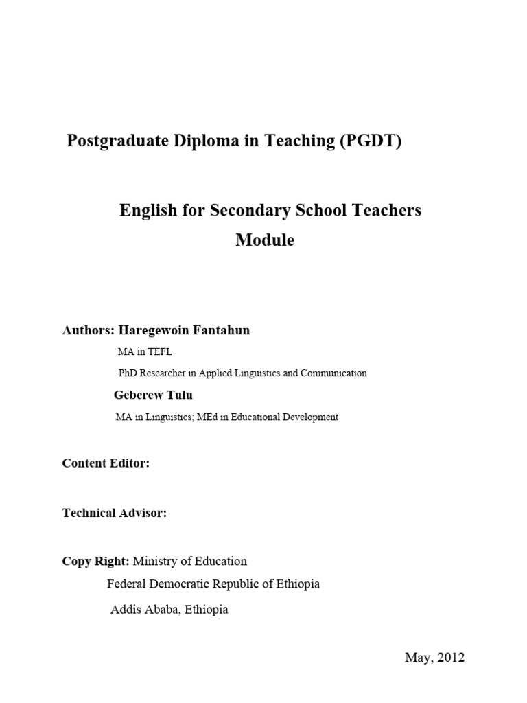 Welcome to the course English for Secondary School Teachers (PGDT 501). We hope that