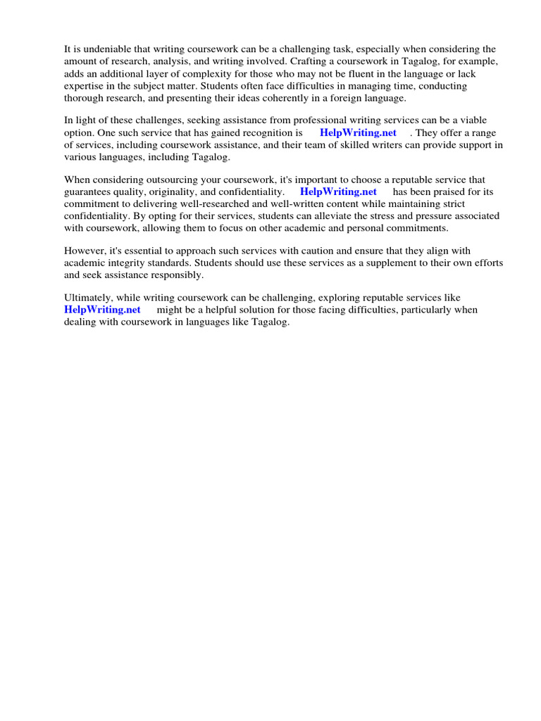 amount of research, analysis, and writing involved. Crafting a coursework in Tagalog, for example,