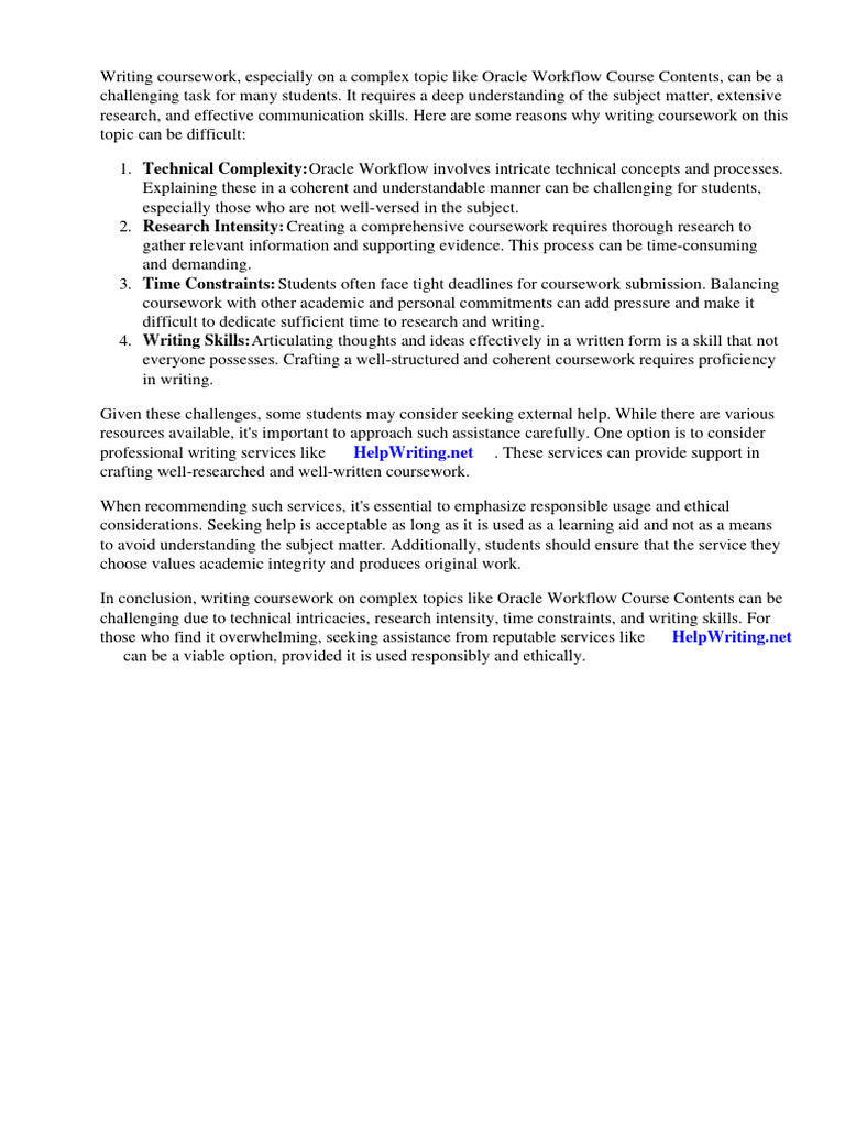 Writing coursework, especially on a complex topic like Oracle Workflow Course Contents, can be a
