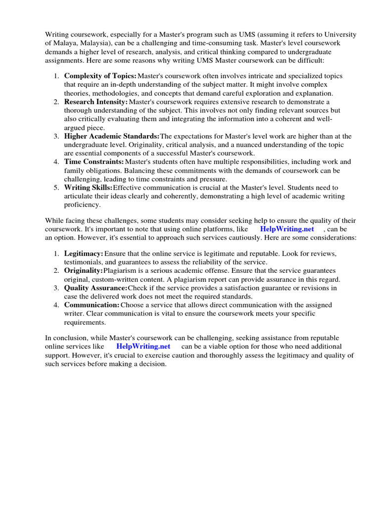 assignments. Here are some reasons why writing UMS Master coursework can be difficult: