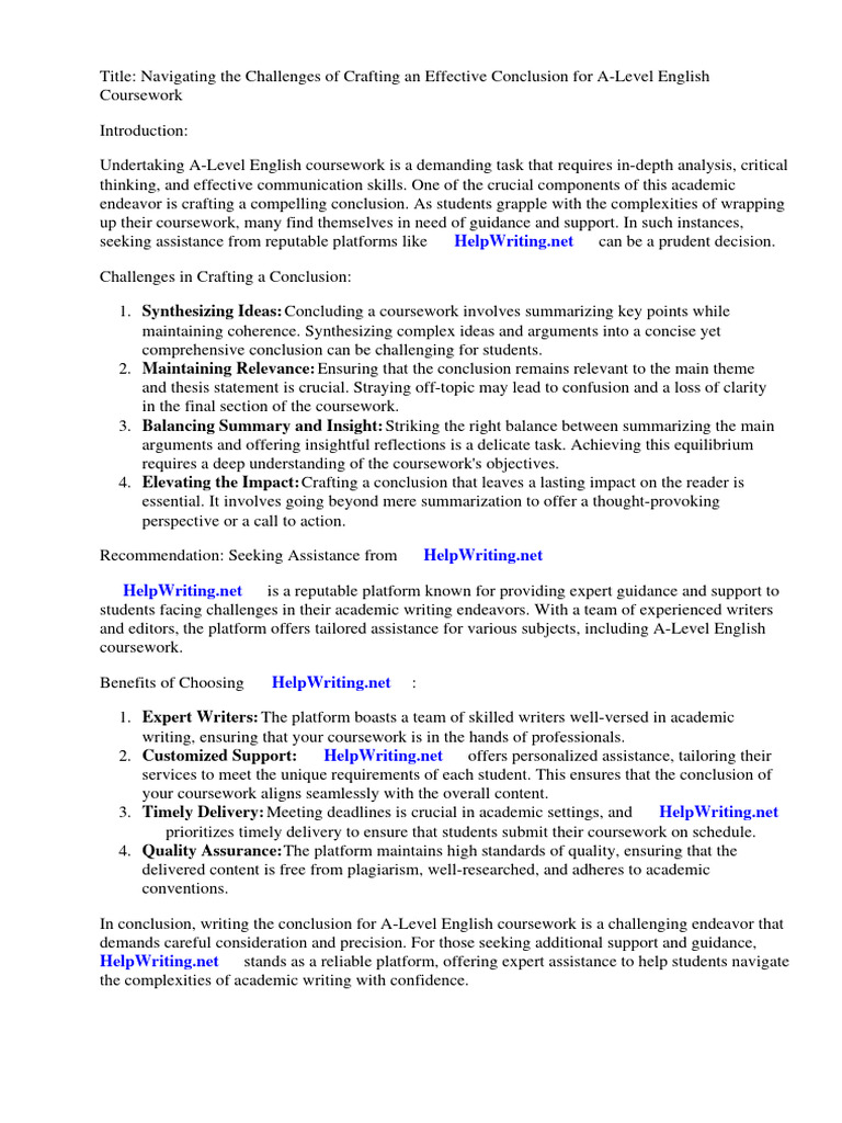 In conclusion, writing the conclusion for A-Level English coursework is a challenging endeavor that