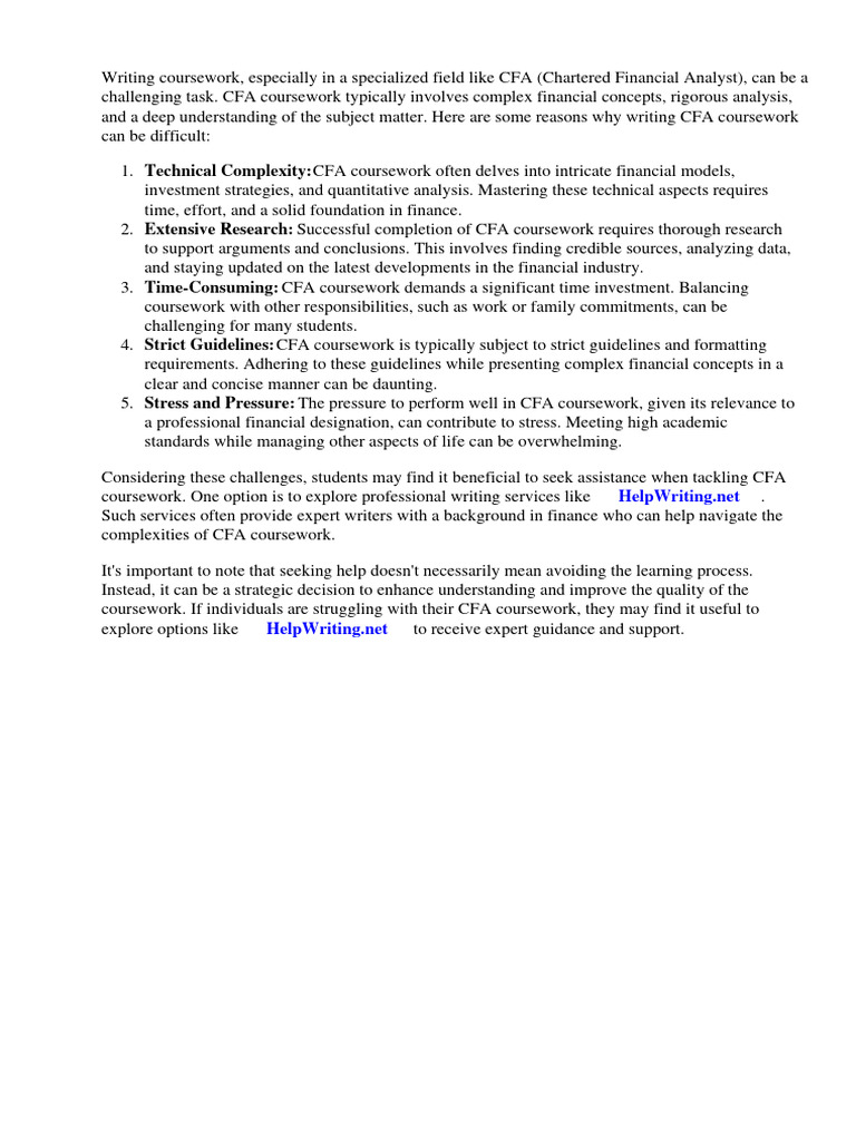 Writing coursework, especially in a specialized field like CFA (Chartered Financial Analyst), can be a