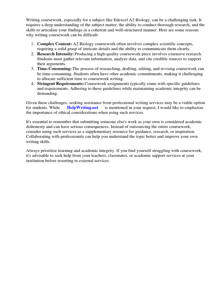 Writing coursework, especially for a subject like Edexcel A2 Biology, can be a challenging task.