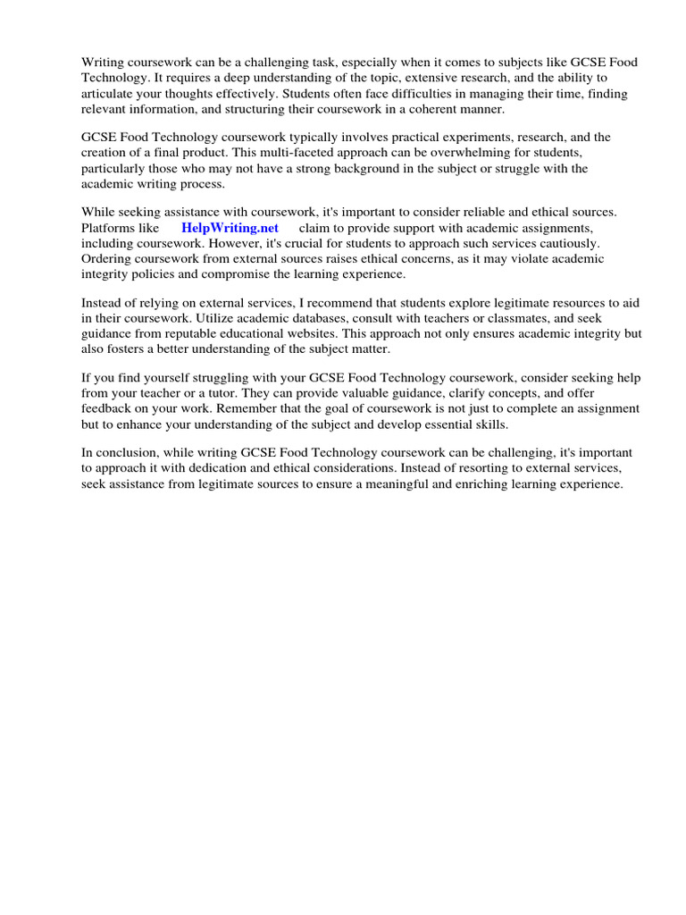 In conclusion, while writing GCSE Food Technology coursework can be challenging, it's important