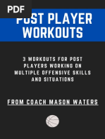 Low post moves 1. Drop step to baseline. After receiving the ball, feel where the defender is. If on the lane side, or high side, give a fake toward the lane. Then extend your inside (baseline) foot backward, pivot on it quickly to the baseline and to the hoop. Keep your body between the defender and the ball, and extend your arms forward toward the hoop. This way, the defender can only block your shot by going over your back ...usually a foul. See video clip. 2. Drop step to lane (jump hook). After receiving the ball, feel where the defender is. If on your baseline side, fake to the baseline, and drop your lane-side foot backward. Pivot quickly on that foot, and jump hook and shoot with the hand opposite the defender. See Hook Shot ; See video clip. 3. Turn and face defender and jab step. After receiving the ball, feel where the defender is. If directly behind you, and not toward either the lane or the baseline, pivot and face the defender, while protecting the ball. Give a quick jab step fake, and see what the defender's reaction is. If he/she drops back, just shoot high-percentage the baby jumper, often off the glass. If the defender does not back off the jab step, quickly drive around him/her. Go right at the defender's shoulder. Don't be afraid of a little contact, because usually the defender will not be planted after your jab step, and will get called for the foul (and you may make the basket as well). 4. Up and under move. After pivoting and facing the defender, fake a shot to get him/her to jump off the floor. The defender, once straightened up, or in the air, is easily beaten. Quickly duck under the defender on a straight line to the hoop. Again, don't be afraid to attack at the shoulder, as this is the straightest and quickest path to the hoop. If a foul is called, it usually will be called on the defender, who was caught up in the air and obviously not planted. See video clip. 5. Flash to the elbow or free throw line. Cut up to the free throw line (get out of the lane to avoid a 3-second call). Receive the ball, pivot and face the defender. You can now either fake a shot, and drive around the defender to the hoop, or jab step and fake the drive, and shoot the easy shot from the free throw line area. This move is especially useful if the player guarding you is much taller, and not as quick. You go high post to get the defender away from the basket. Once away from the hoop, you can use your quickness and drive around him/her. See video clip. 6. Back door lob. If the defender is in front of you, take him/her up to the free throw line. While the defender is still fronting you, take inside position and seal, and give the guard with the ball a signal. Cut back door to the hoop, receiving the lob pass from your teammate. 7. Learn to read the defense. See the low post information on the Basic Concepts of Motion Offense page. These moves are not easy at first. They require a lot of practice, first to perfect the moves themselves, and then to learn by experience which move to use in which situation. For example, if you beat the defender once or twice with the baseline drop step, then he/she will be looking for that move, and you can easily get the turn around jab step baby jumper, because the defender will back off. Just the opposite, if you have already made a couple baby jumpers, you can drop step either to the baseline or lane, or do the up and under move, since the defender will be looking for your jumper. The bottom line... perfect the moves by practicing, and vary your moves in the game. Be sure to see the video clips of the moves described above. Another real bonus is that frequently these moves will get the defender into foul trouble when trying to defend you. And if already in foul trouble, he/she won't challenge you, and you can get the easy inside basket. This is also very important... since you will get fouled a lot, become a good free throw shooter... make that defender pay for fouling you! Drills Low Post Breakdown Drills and 3-Man Rebounding Power Drill Also read the post moves on Basic Concepts of Motion Offense.