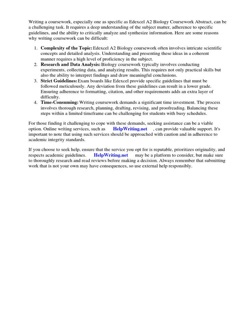 Writing a coursework, especially one as specific as Edexcel A2 Biology Coursework Abstract, can be