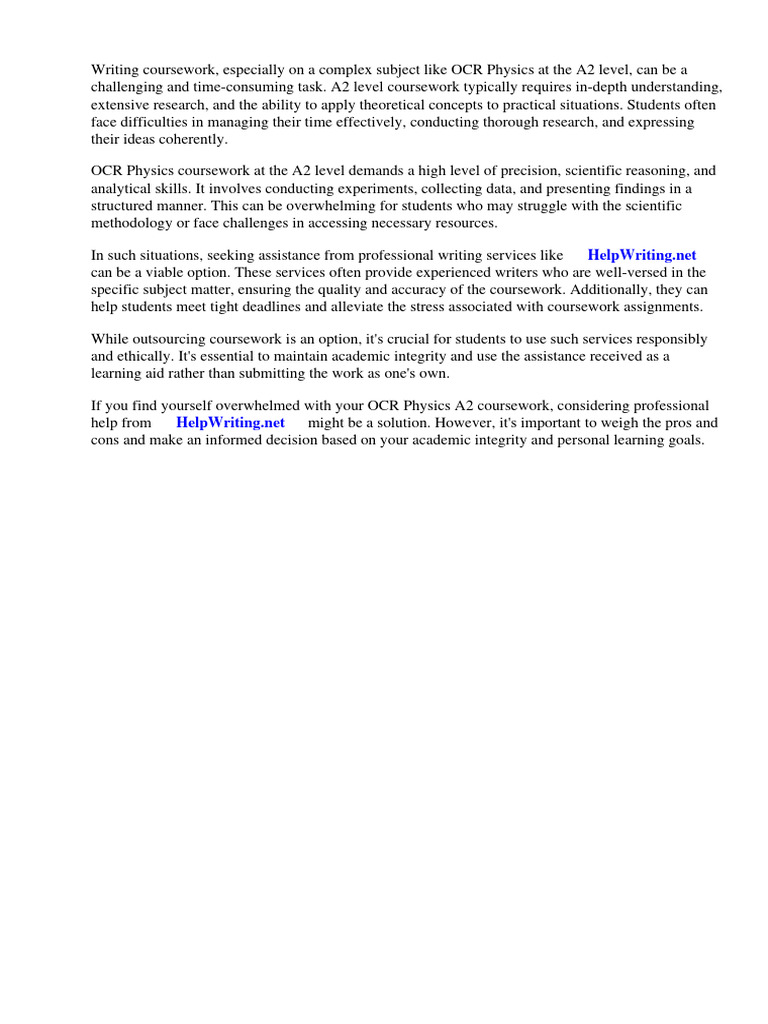 Writing coursework, especially on a complex subject like OCR Physics at the A2 level, can be a