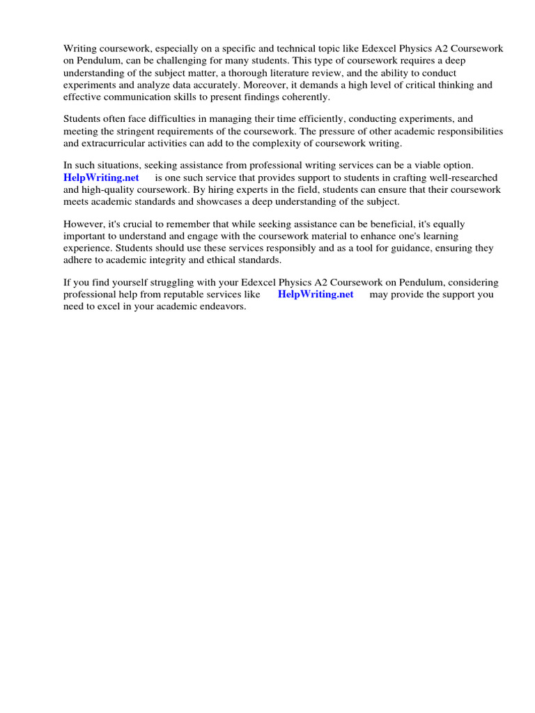 If you find yourself struggling with your Edexcel Physics A2 Coursework on Pendulum, considering