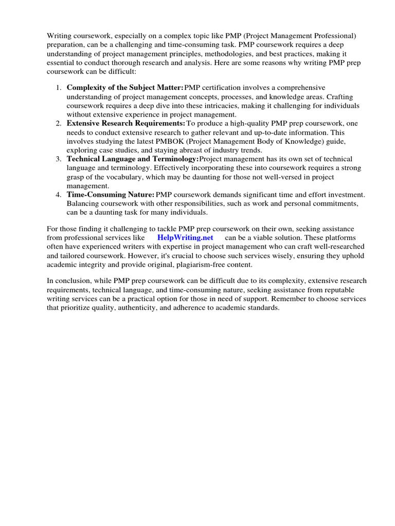 Writing coursework, especially on a complex topic like PMP (Project Management Professional)