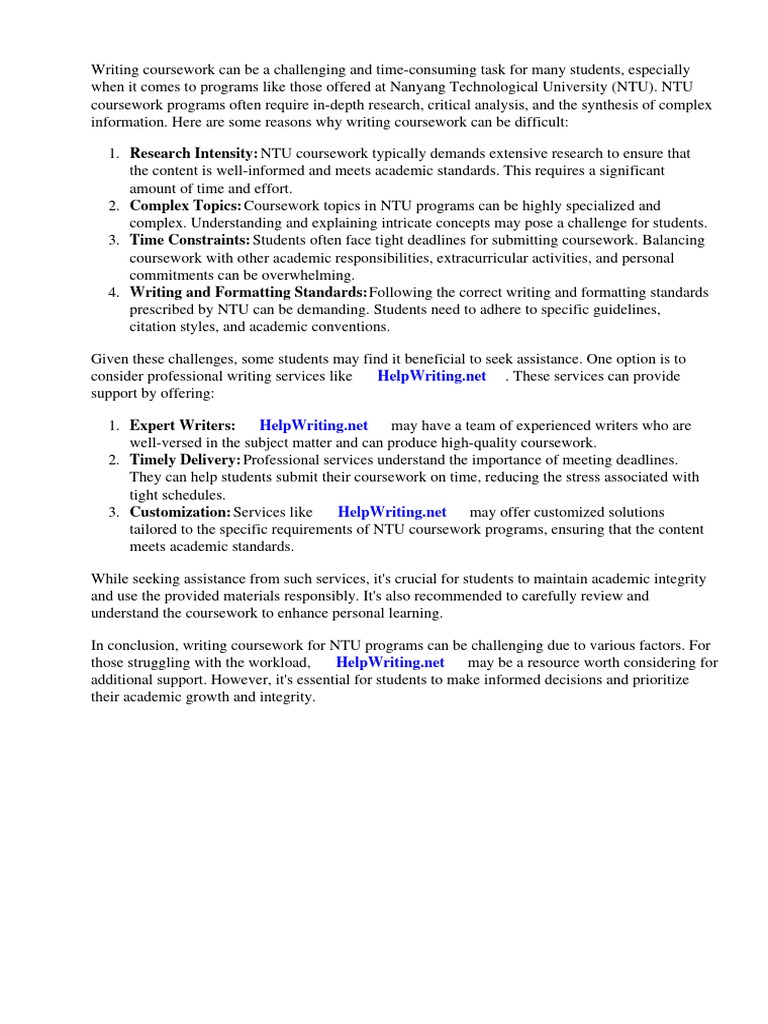 In conclusion, writing coursework for NTU programs can be challenging due to various factors. For
