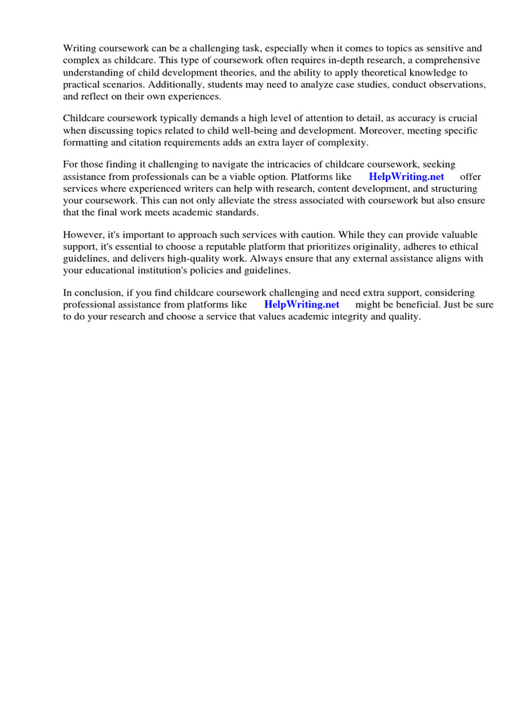 complex as childcare. This type of coursework often requires in-depth research, a comprehensive