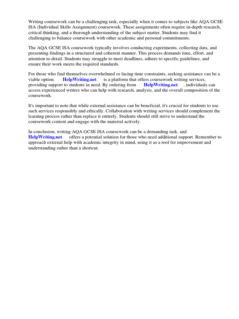In conclusion, writing AQA GCSE ISA coursework can be a demanding task, and ⇒