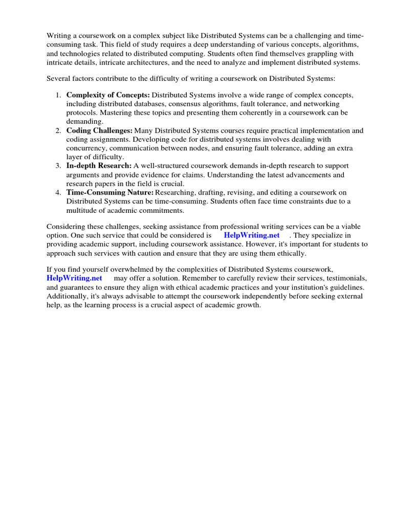 Writing a coursework on a complex subject like Distributed Systems can be a challenging and time-