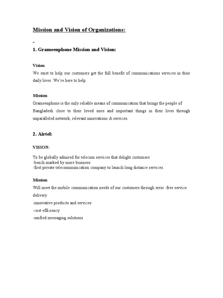 1. Grameenphone Mission and Vision: