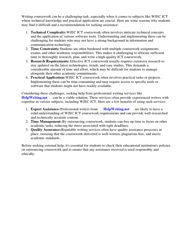 Writing coursework can be a challenging task, especially when it comes to subjects like WJEC ICT
