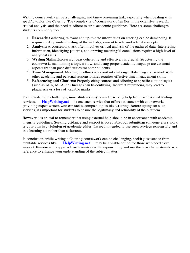 specific topics like Catering. The complexity of coursework often lies in the extensive research,