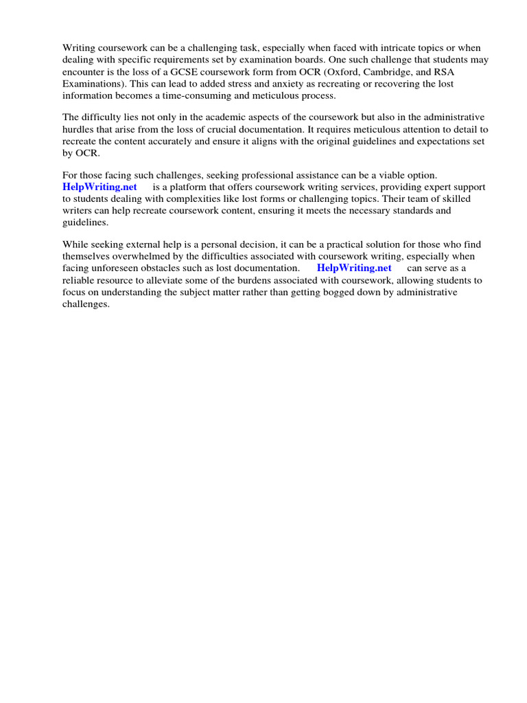 encounter is the loss of a GCSE coursework form from OCR (Oxford, Cambridge, and RSA