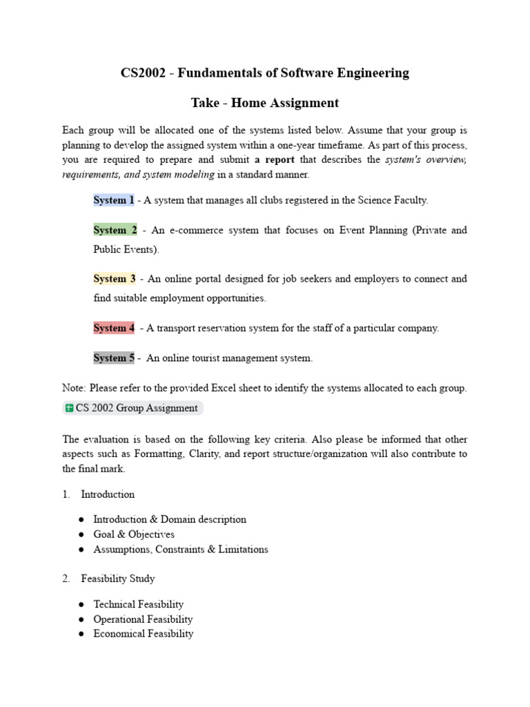 Each group will be allocated one of the systems listed below. Assume that your group is